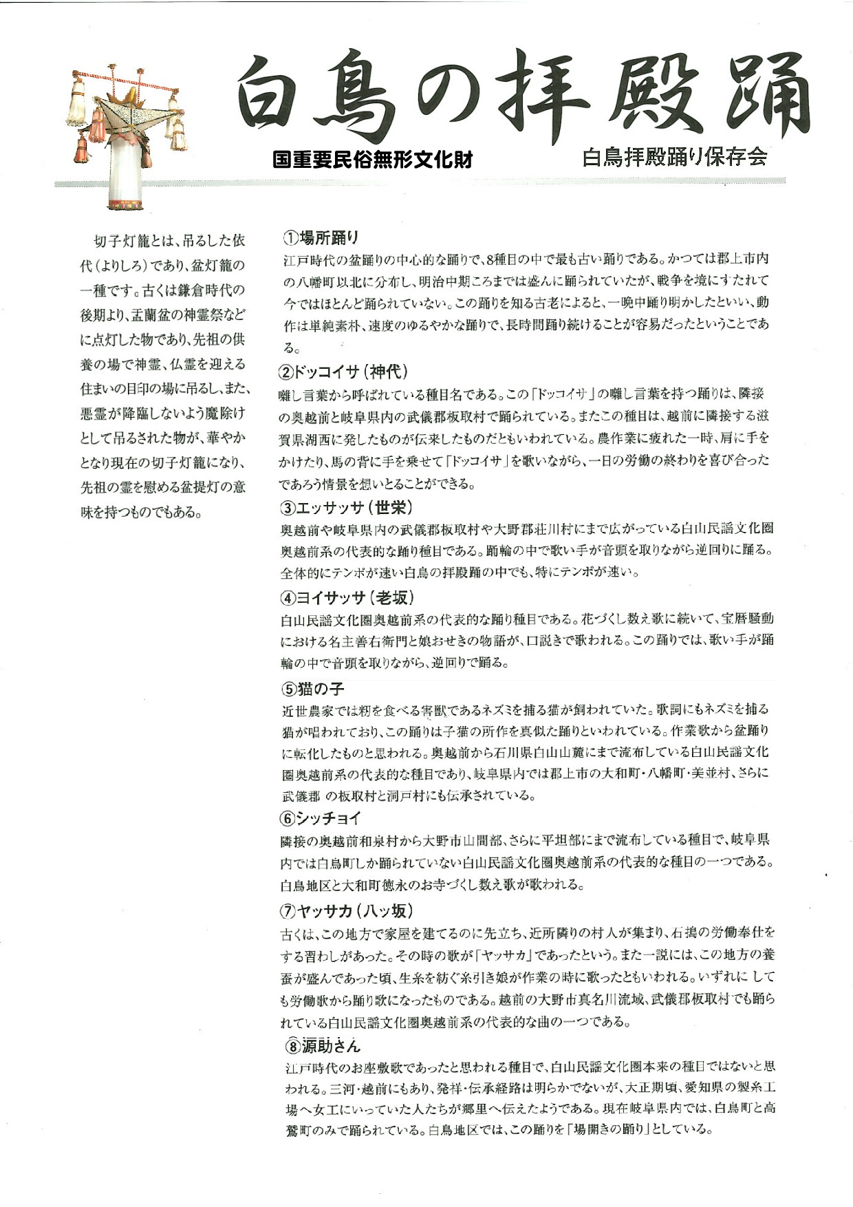 国の重要無形民俗文化財 白鳥拝殿踊り保存会
